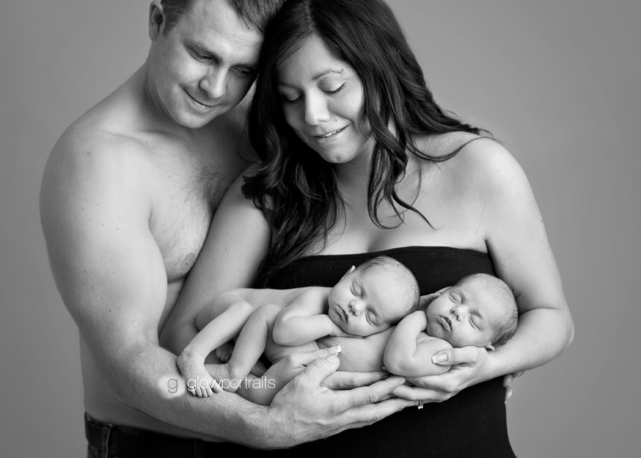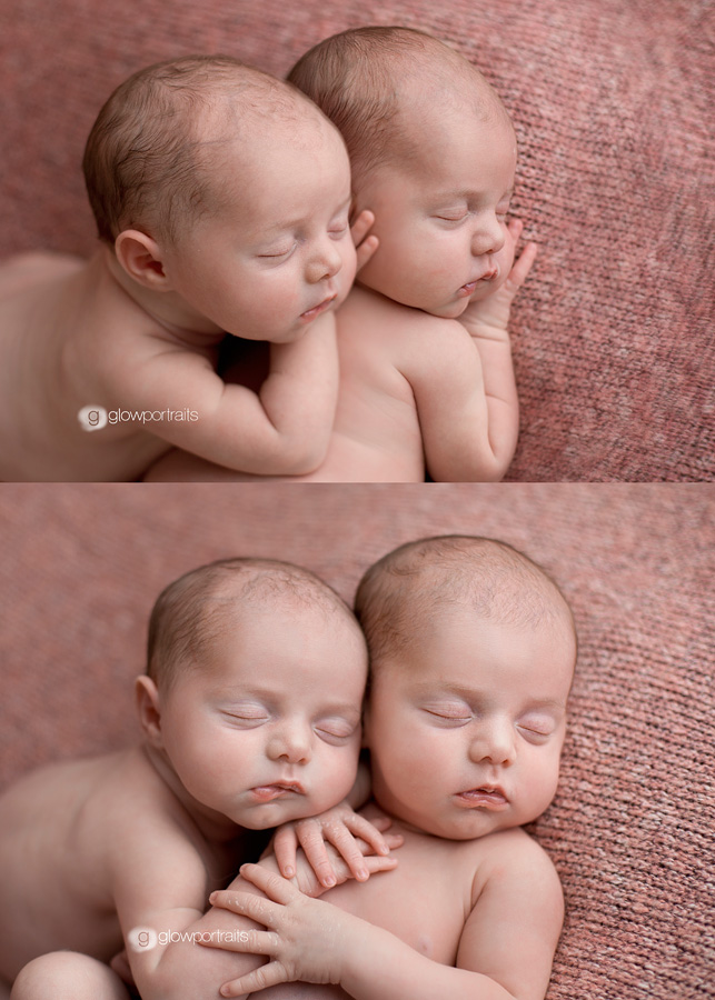 I’m so pleased to introduce two little beauties! Natalie & Locklynn. Natalie was born weighing 6lbs 4oz and Locklynn was 7lbs 11oz. These wee girls were wonderful to work with for their newborn session. They slept like champs and we got amazing images for mom and dad 🙂 You can view their beautiful mama’s maternity session with Glow Portraits here. This post is a bit image heavy since we had so many great pictures 😉 Congratulations Deshana & Craig, you’re girls are amazing, xo.